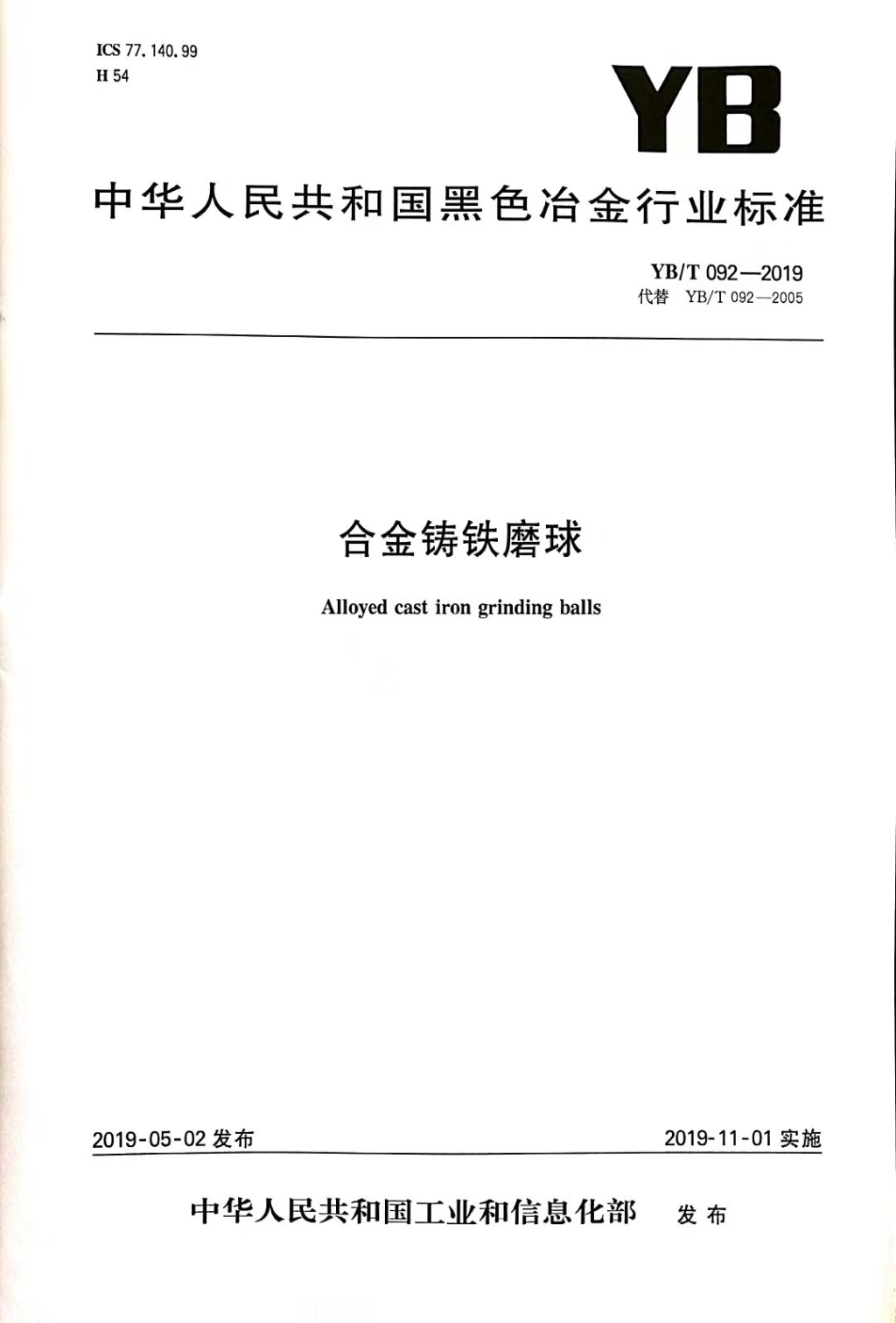 • 低鉻合金鑄鐵磨段YB/T 093-2019